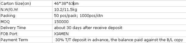 • Customized Logo: (Min. order: 50000 pieces)