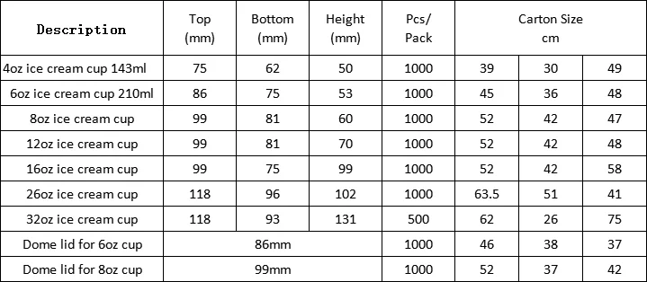 - 4oz 6oz 8oz 12oz 16oz 32oz 64oz Ice Cream Paper Cup Disposable Ice Cream Tubs