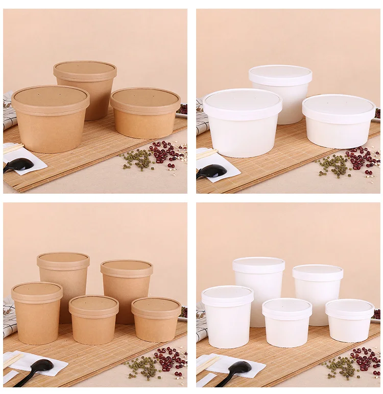 Factory Wholesale Paper Kraft Soup Cup Custom Printed Disposable Takeaway Hot Soup Bowls