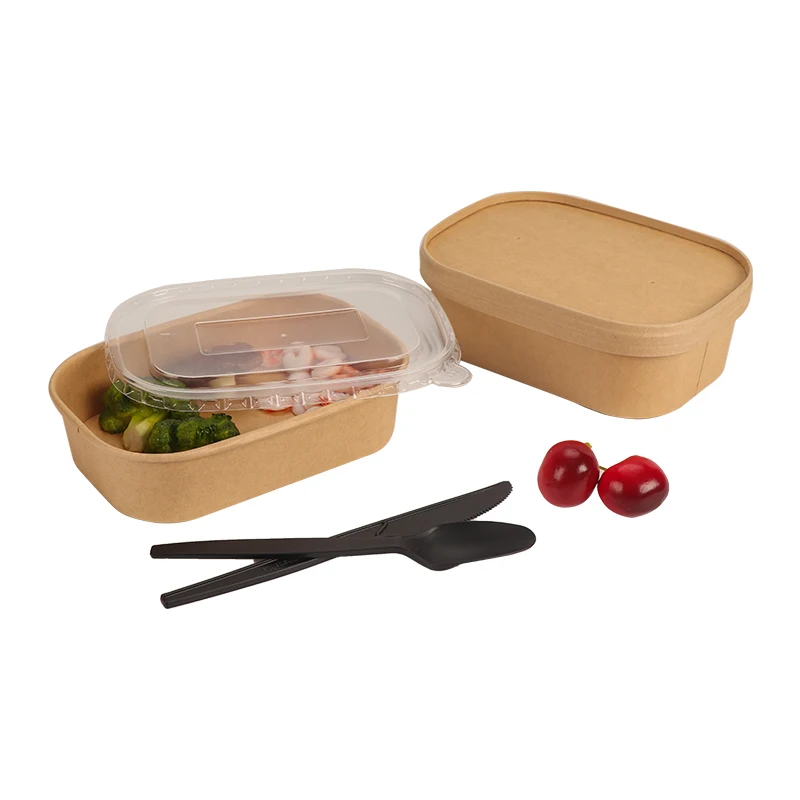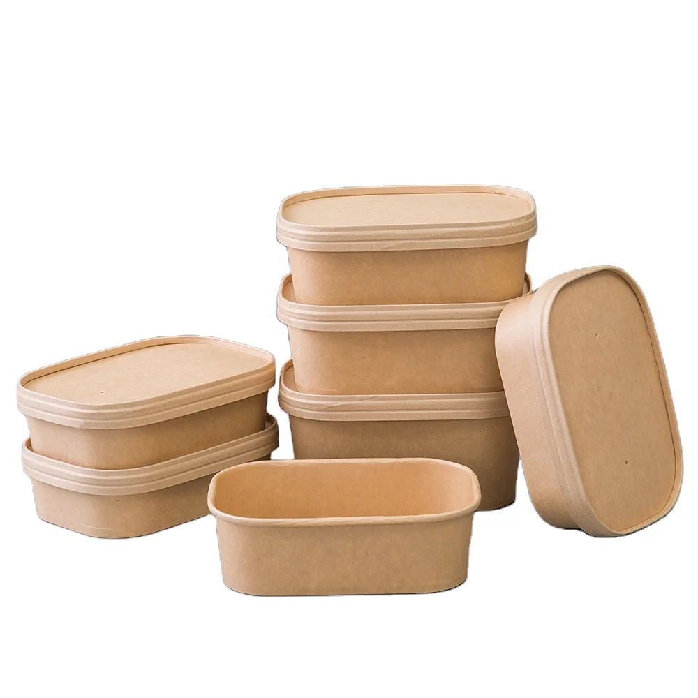 - 750ml Custom Wholesale Printed Single Wall Paper Rectangle Bowl Disposable