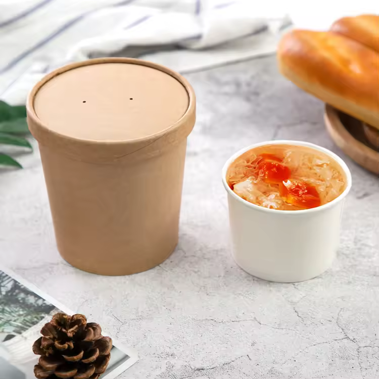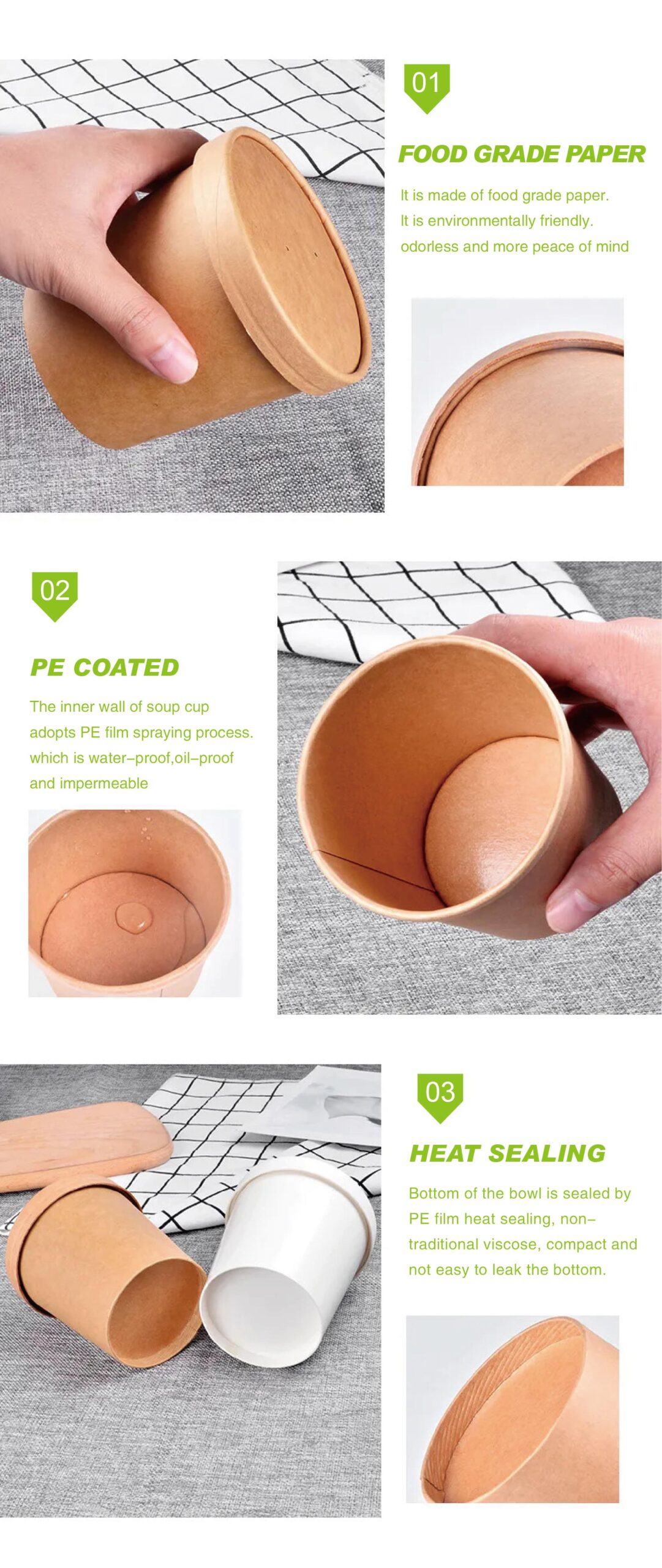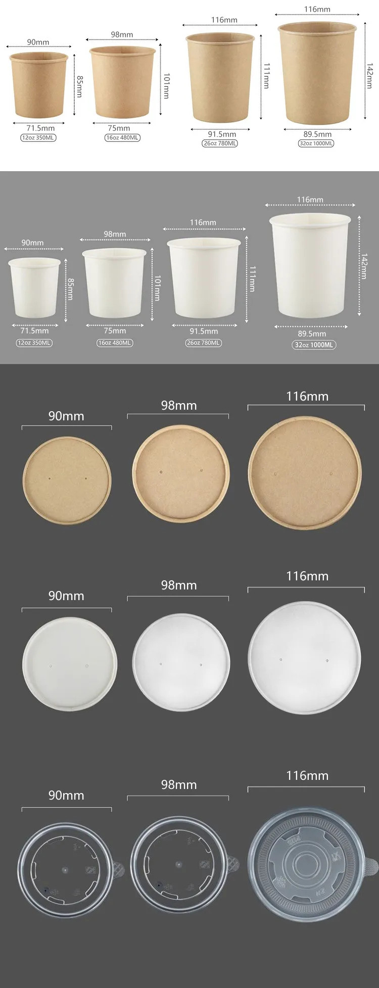 8oz 12oz 16oz 20oz 26oz 32oz Brown Kraft Soup Cup with Kraft Paper Vented Lid