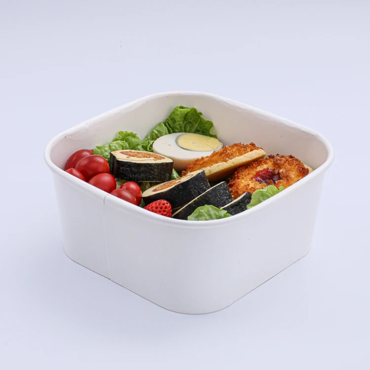 Paper Salad Packaging Tableware square Paper Salad Bowl with Lid