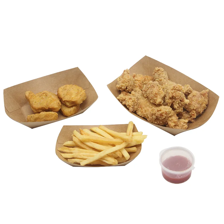 3. Custom Logo Food Tray Disposable Kraft Paper Food Tray for Nachos Tacos BBQ Fries (25#-500#)
