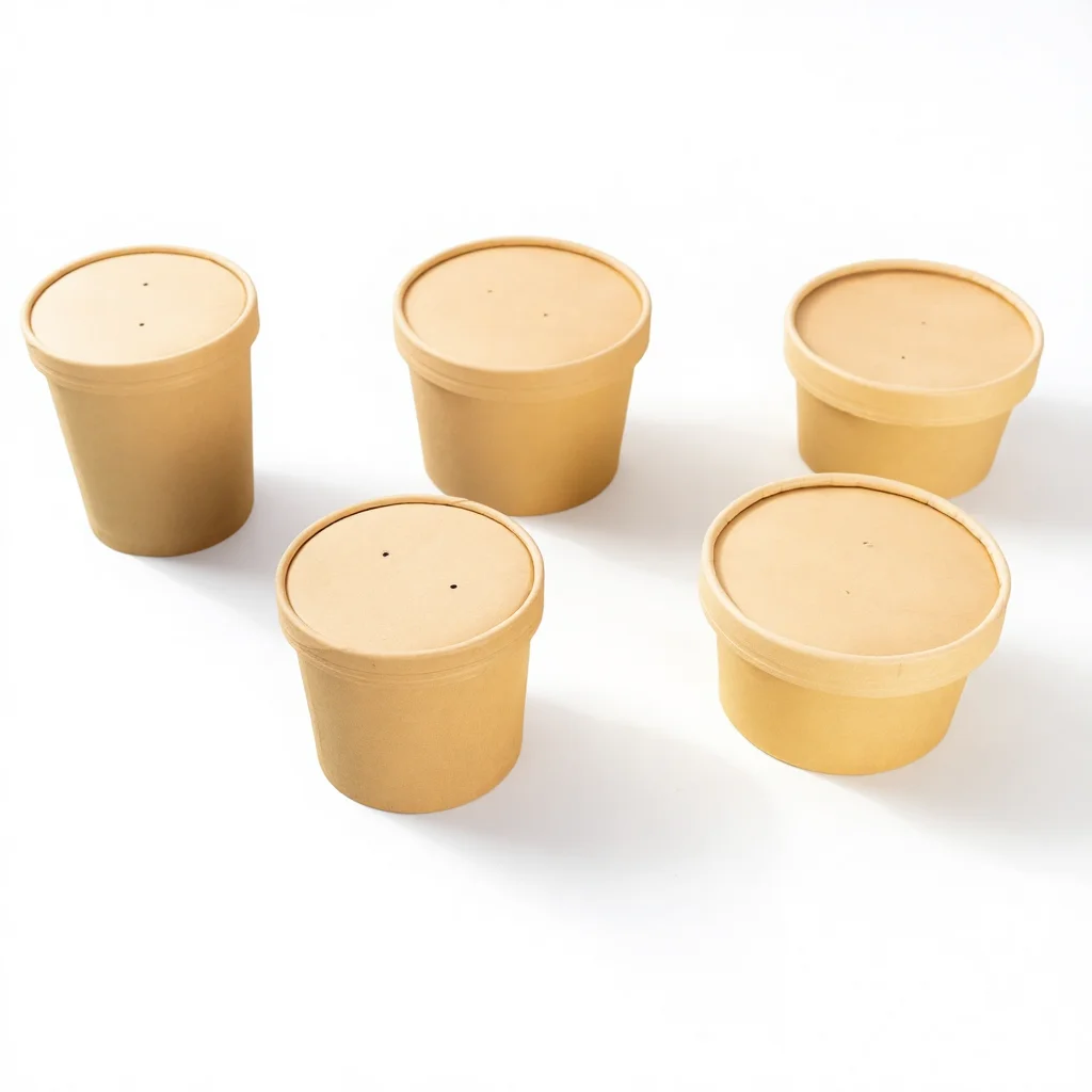 - Custom Logo White/Kraft Paper Cup for Hot/Cold Food Vented Flat Lid Takeout Pack Soup Noodles/Sugar Cookies Craft