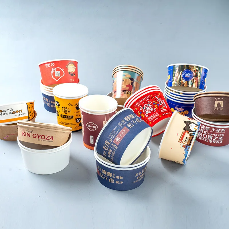 Customized Disposable Paper Bowls Poke Bowl Salad Takeaway Paper Craft Single Wall Paper Cup Other Food Frozen Yogurt Etc