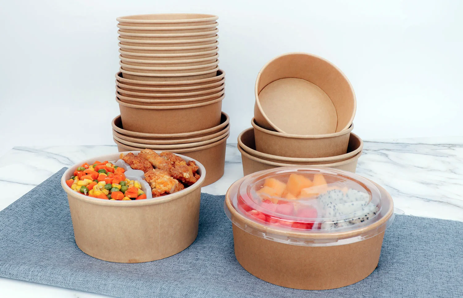 Disposable Paper Bowl Wholesale Kraft Paper Salad Bowl Round Packing