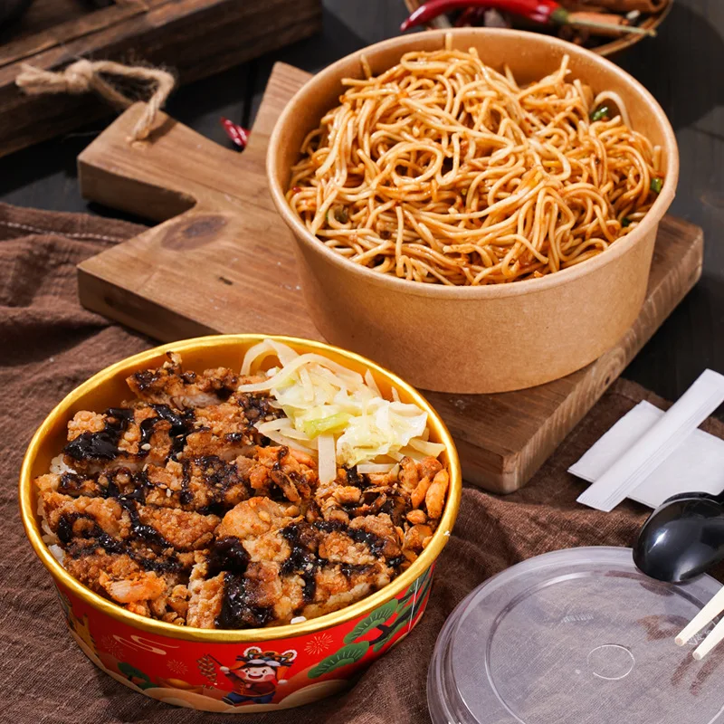 Disposable Take Away Kraft Paper Bowl Poke Bowl with Lid Soup Kraft Bowl
