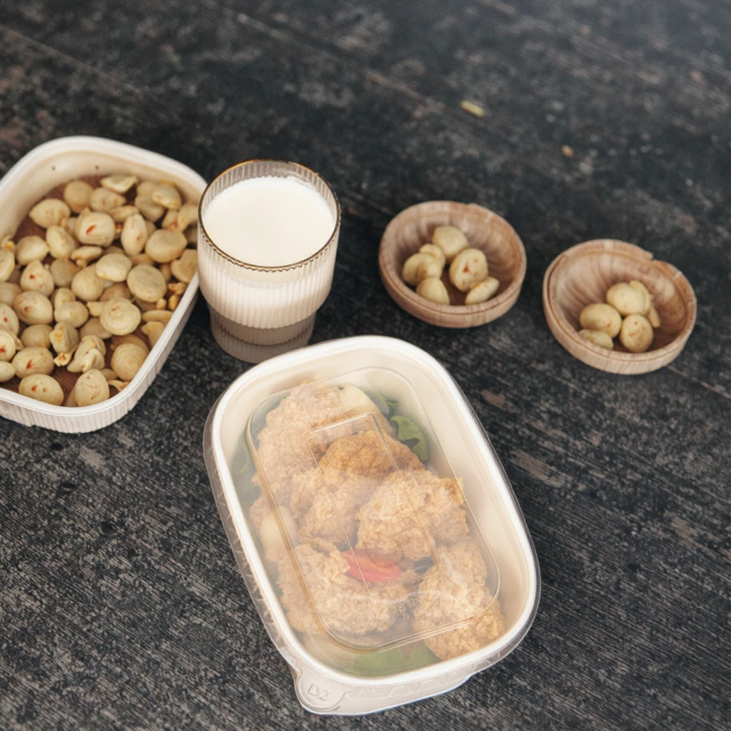 Factory Wholesale Disposable Kraft square Paper Bowl Rectangular Take Out Packing Fast Food Box with Lid