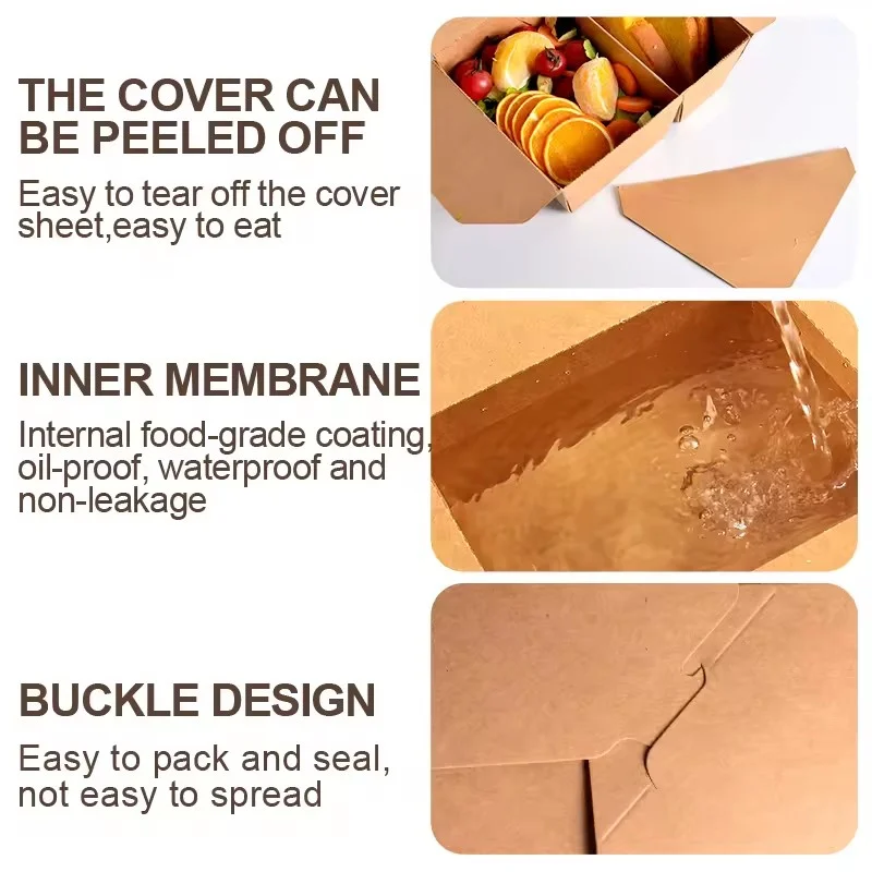 Jeafer Custom Eco-Friendly Take Away Container Kraft Food Grade Lunch Box Food Takeout Packaging Box for Salad Sandwich Cake