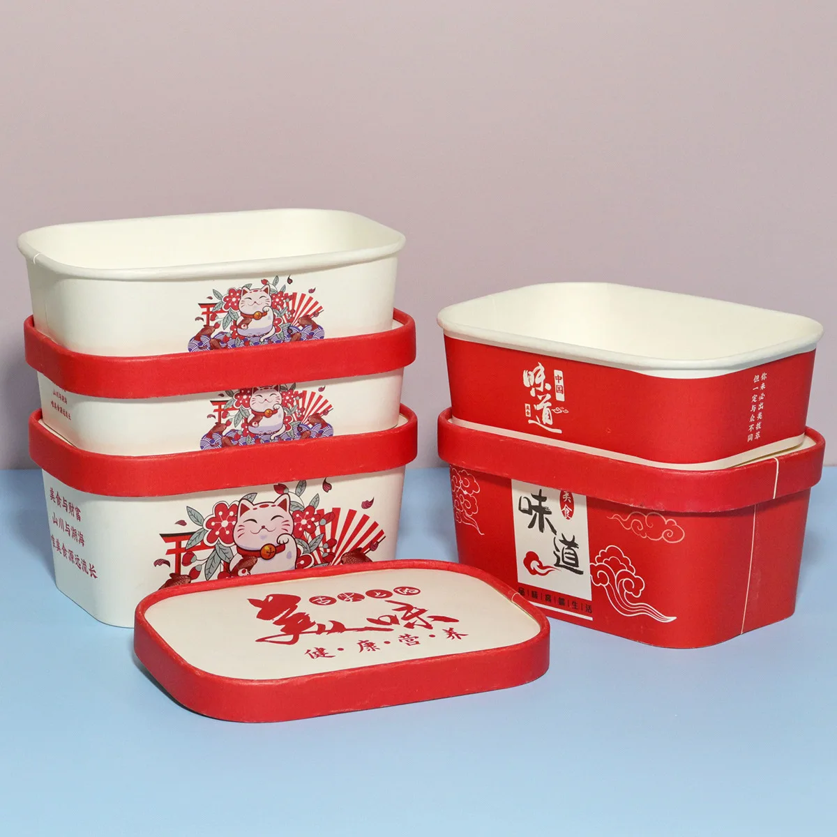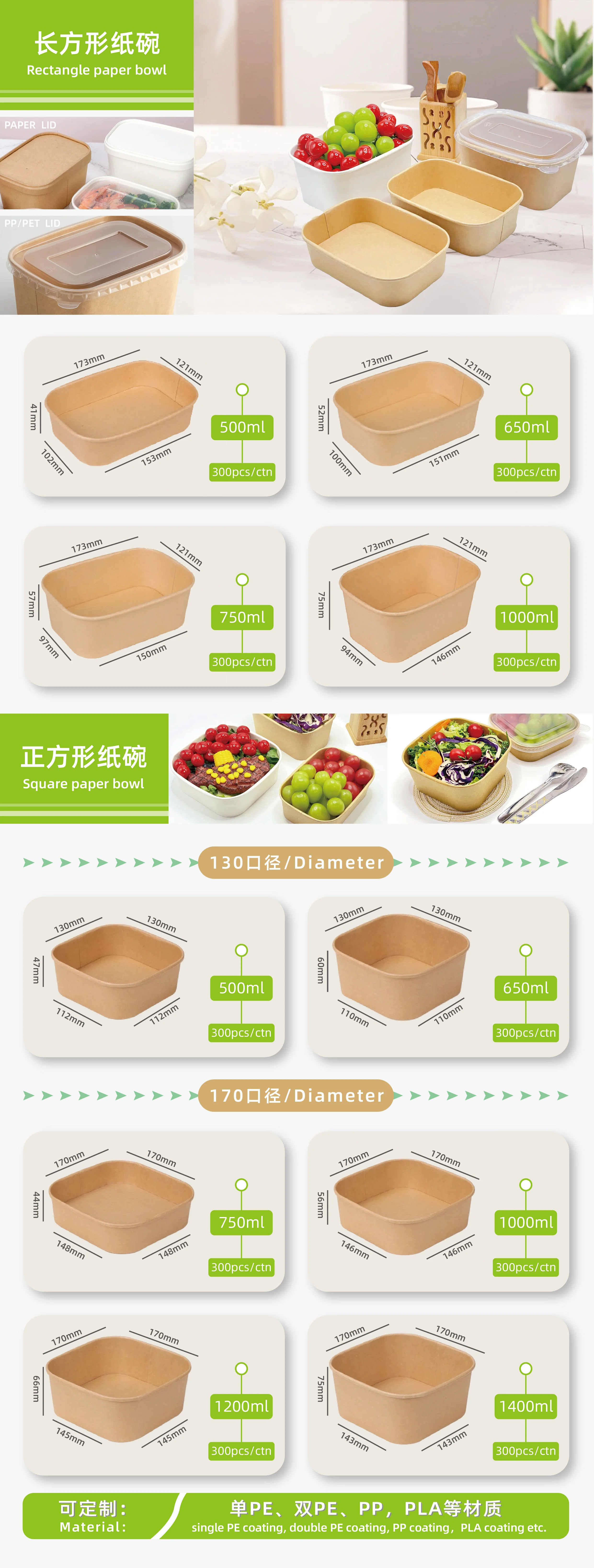 500ml 750ml 1000ml Food Packing Paper Bowls Disposable Take Out Paper Bowl with Lid