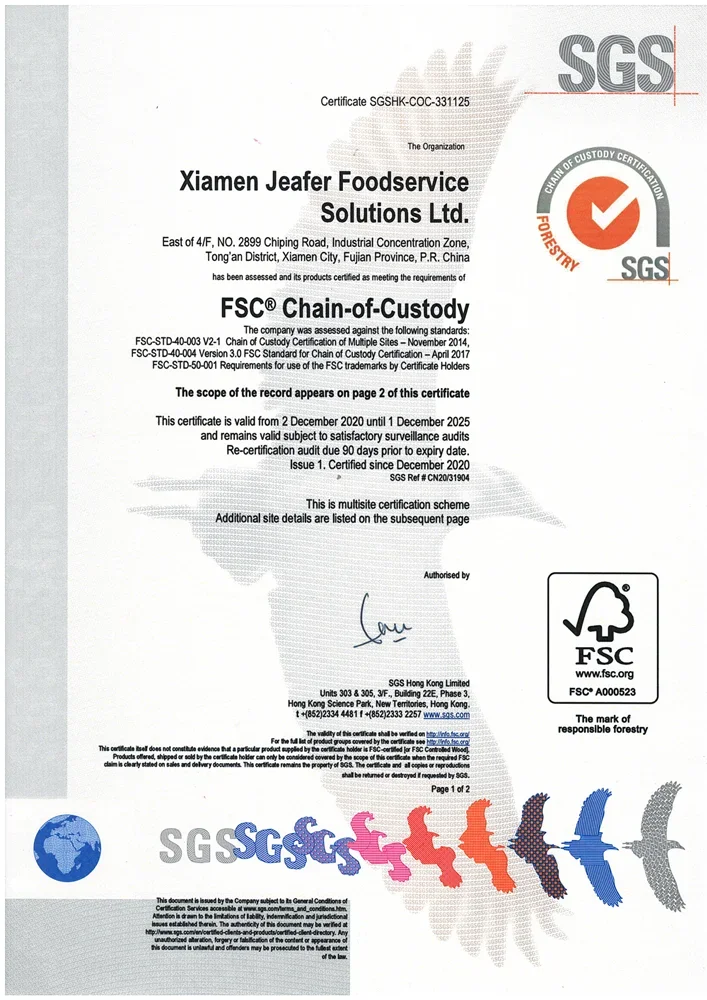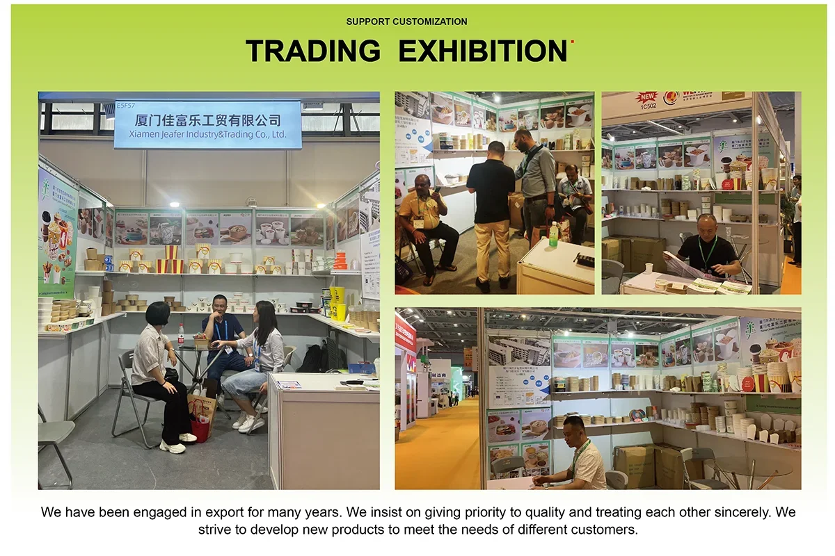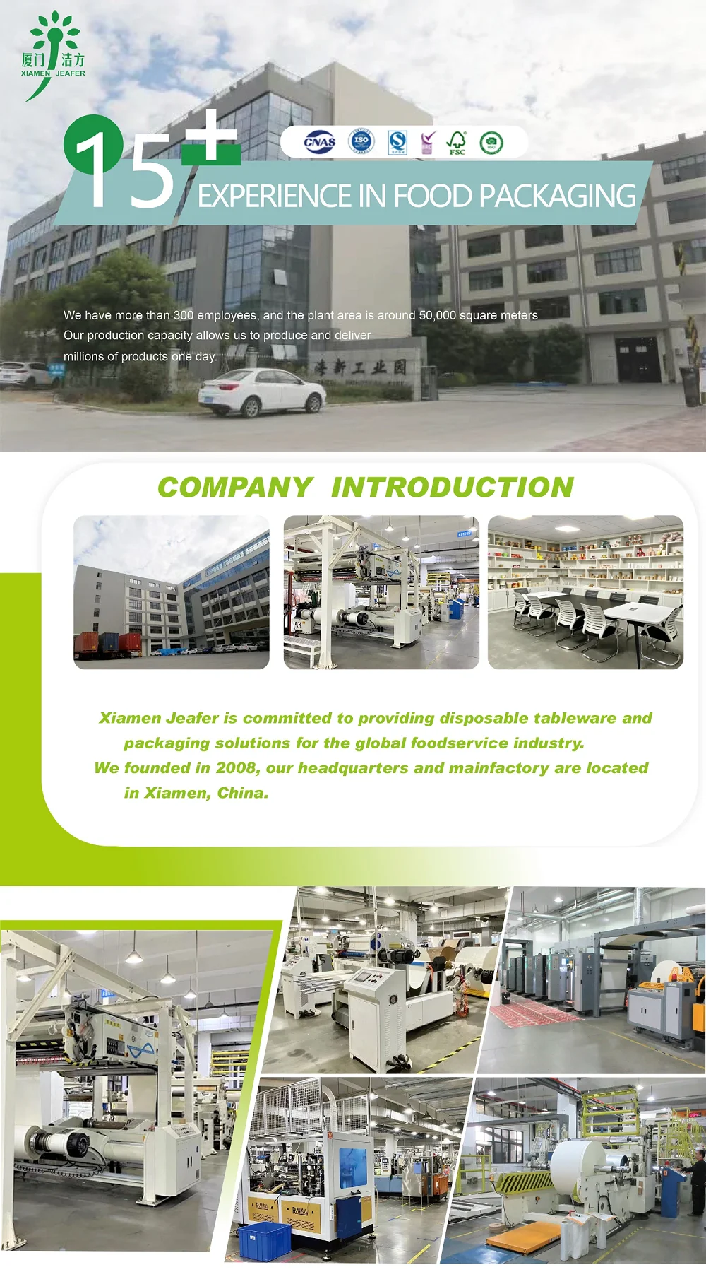 Xiamen Jeafer Foodservice Solutions is a manufacturer and exporter specilizing in disposable foodservice products. We work on the principle of Sincerity and Mutual Benefits so that we gain the wide trust and respect from the clients. We set our goal to offer products in high quality, competitive price and best service.