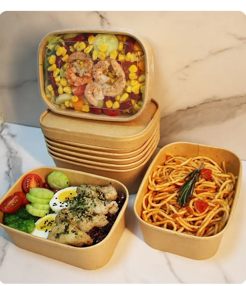 Jeafer Eco Friendly Disposable Rectangular Kraft Paper Salad Bowl Take Away Food Container Microwavable 500ml/650ml/750ml/1000ml