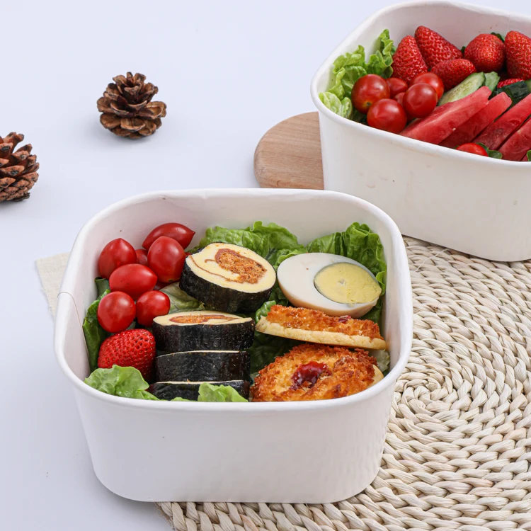 Paper Salad Packaging Tableware square Paper Salad Bowl with Lid