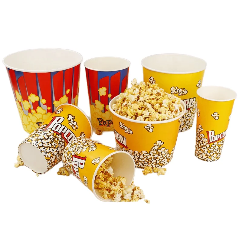 - Popcorn Bowl Paper Container Movie Theater Bucket Packaging Biodegradable Eco-Friendly Double Wall Custom Sizes 24oz-170oz