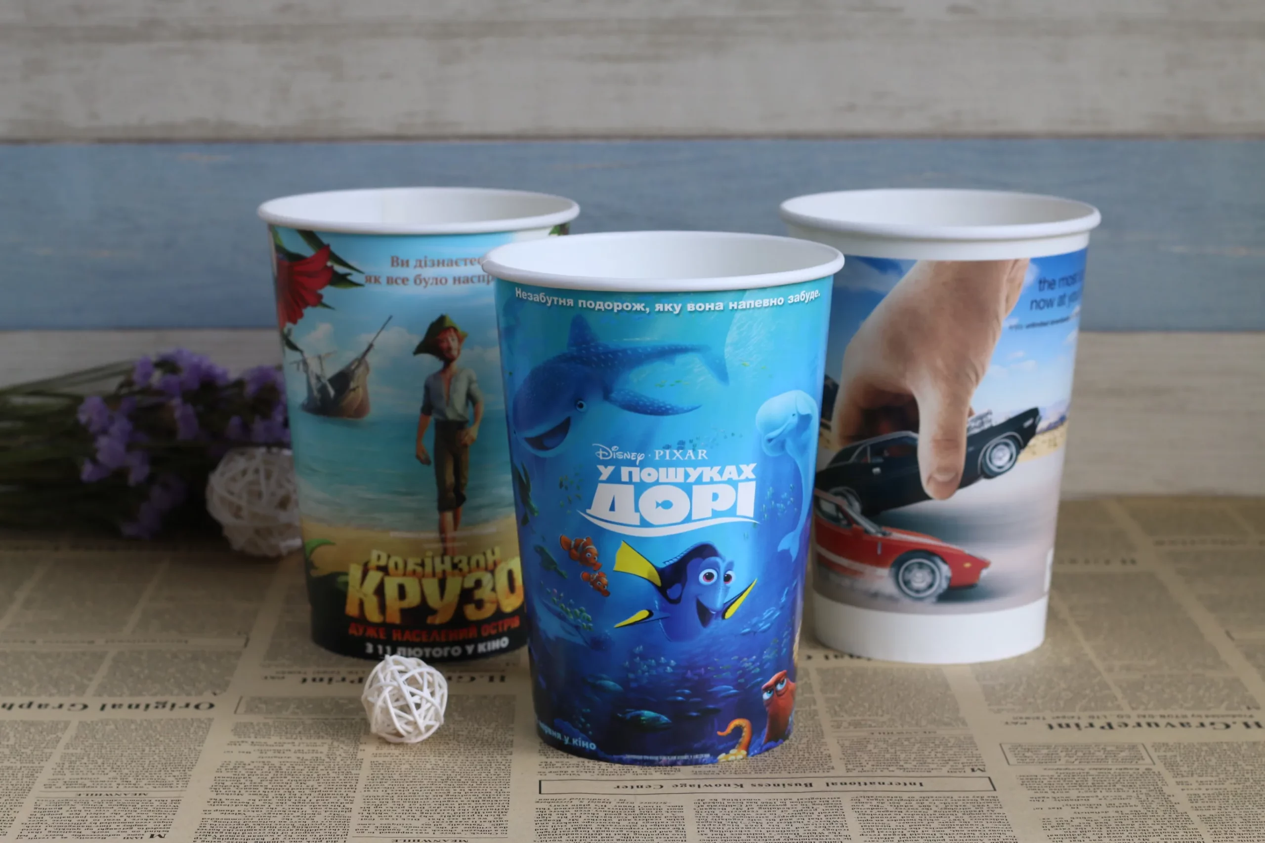 32oz Paper Popcorn Cup Disposable Printed Colorful Cartoon Printed Popcorn Buckets