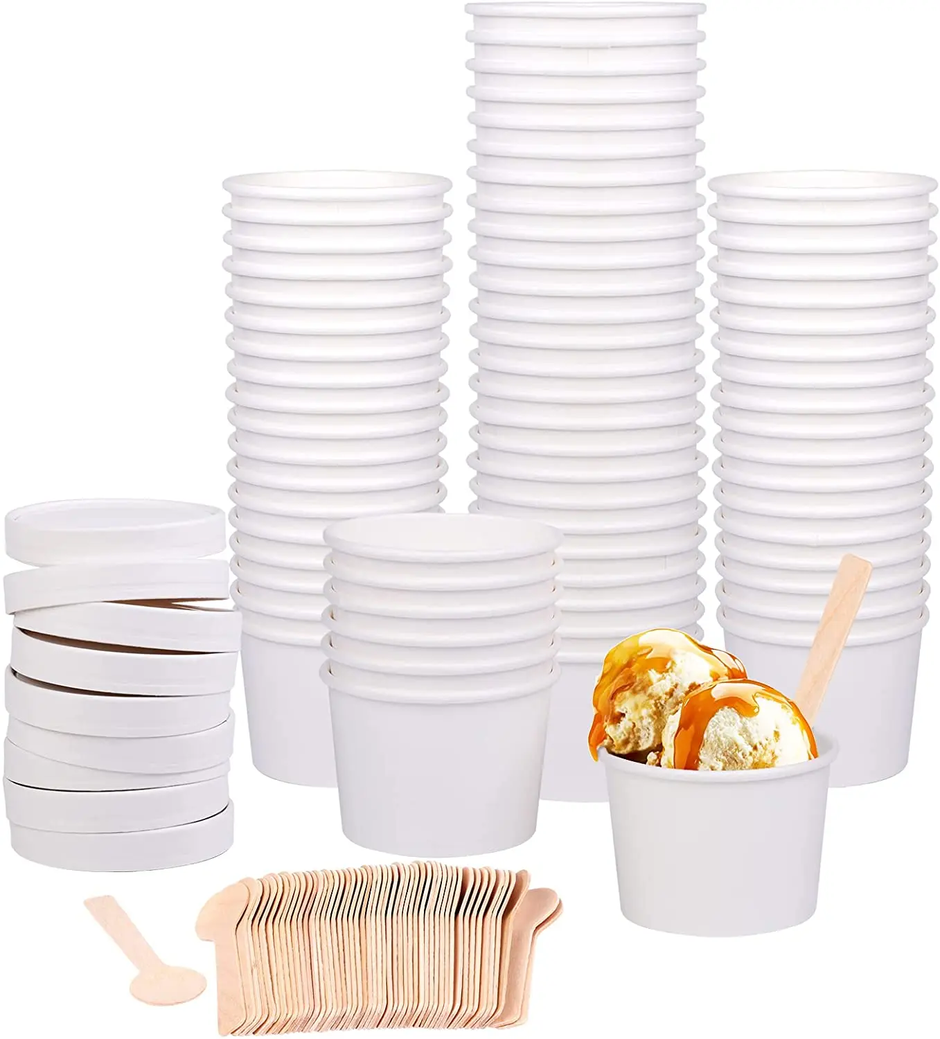 - Wholesale Disposable 3oz 4oz 12oz Cup Ice Cream Packaging Custom Ice Cream Paper Cup with Lid and Spoon