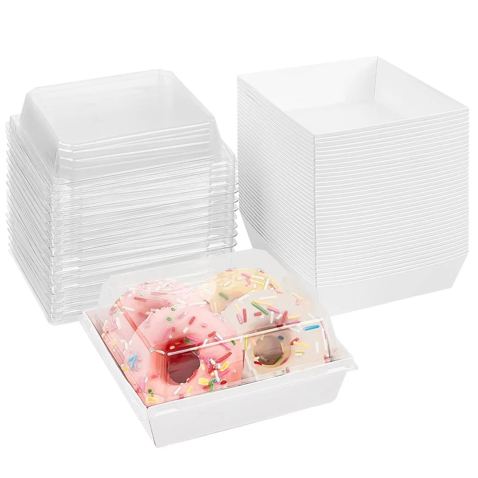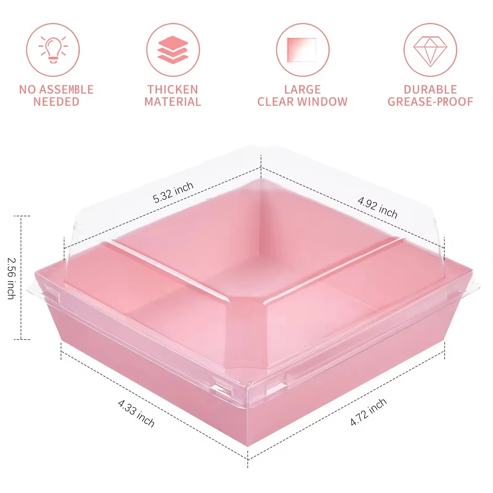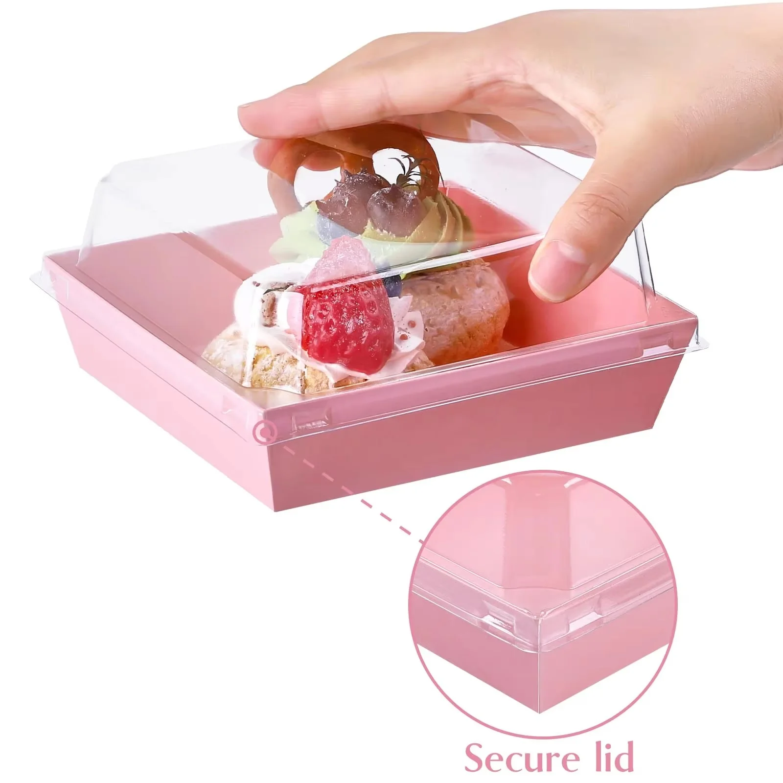 - Wholesale Disposable Eco-Friendly Rigid Square Paper Boxes with Transparent Lid for Sandwich Puff Cake and Sushi Food Packaging